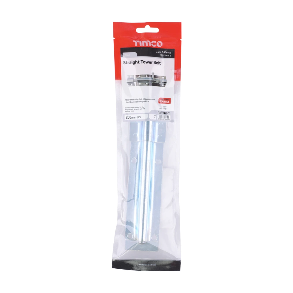 Straight tower bolts are used for securing flush fitting gates and shed doors in a closed position. Fixings included.